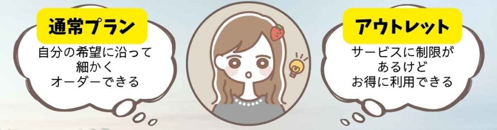 一方で、アウトレットプランはスタッフのシフトの空き枠を活用することで、スケジュールを限定しつつも通常と同じ品質をお得に利用できる仕組みです。